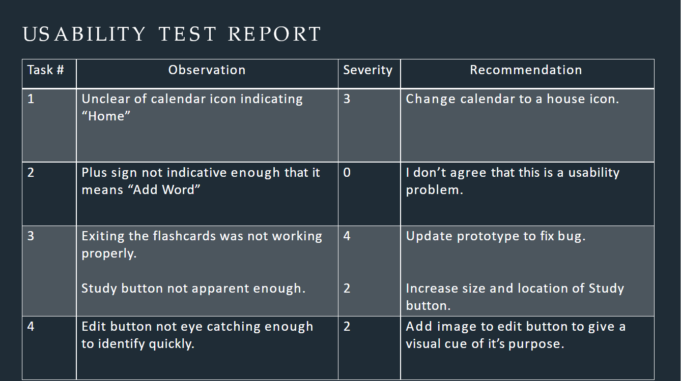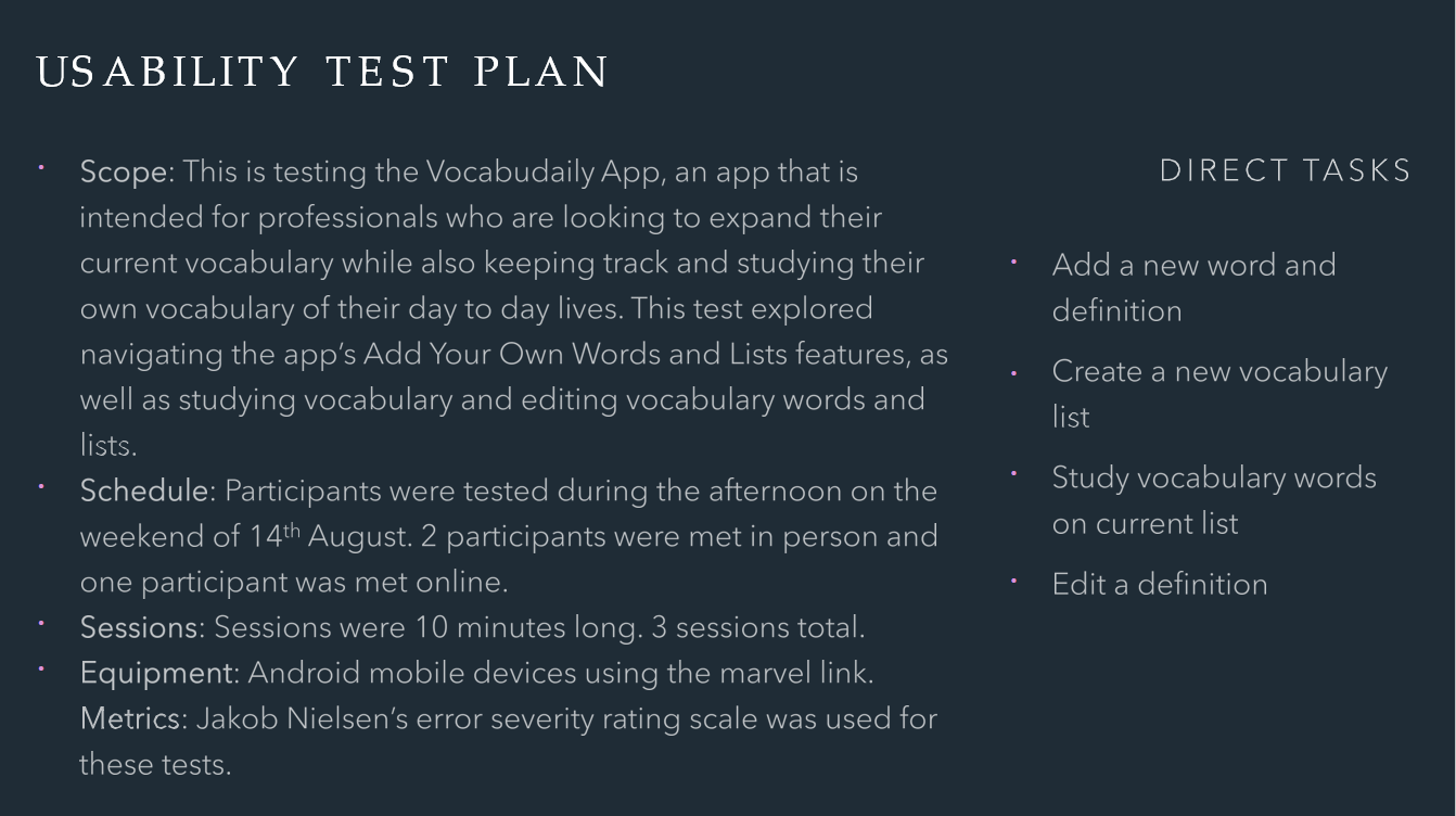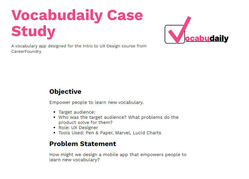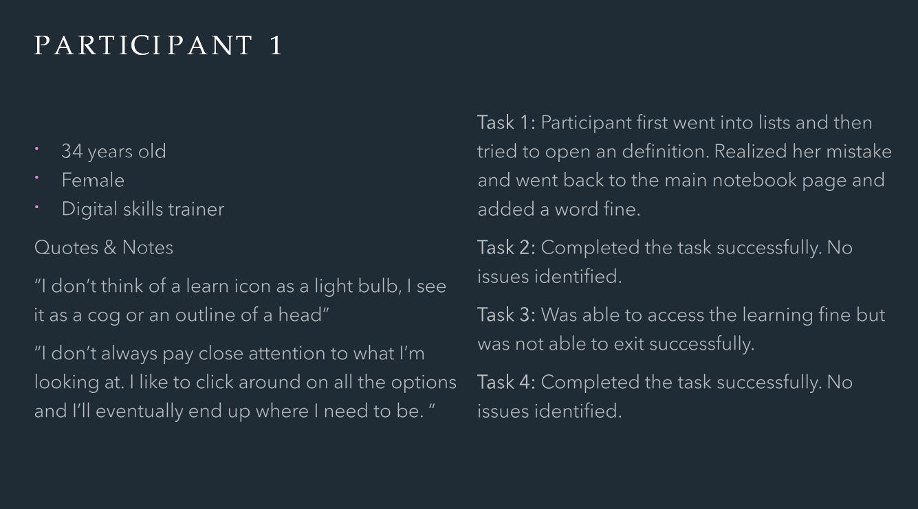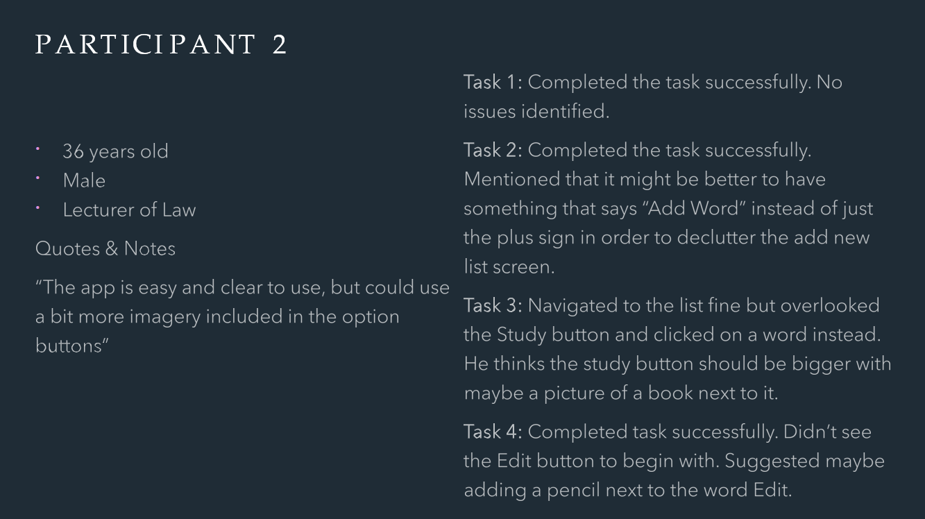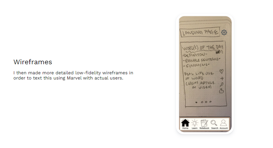 Success Criteria: User is able to view vocabulary words and meanings easily.